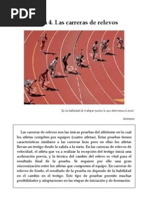 Quien está corriendo porta un objeto (estafeta o testigo) que al . Hola, comparto con uds sugerencias de 6 actividades con aumento progresivo de la dificultad para introducir las carreras de relevos en .